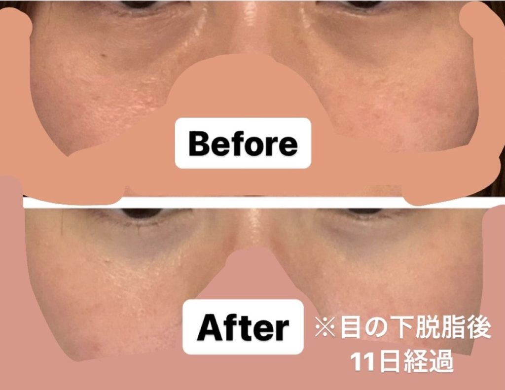こちらは施術前と、目の下脱脂後11日が経過した後の画像です。