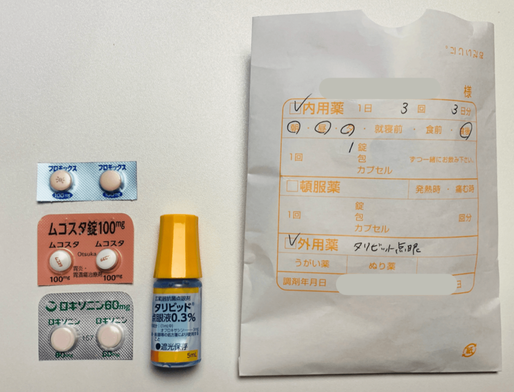 - おまけ:帰りに渡された薬(錠剤&目薬)はコレ。