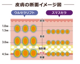 ハイフは使用する専用カートリッジによって照射の深さを変える事ができます。