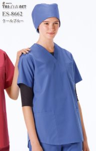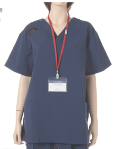 かぶるタイプのスクラブです。通常のミズノスクラブとカラーが同じなので、病院全体をミズノで揃えれば他の人と合わせて着ることができます。